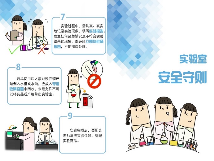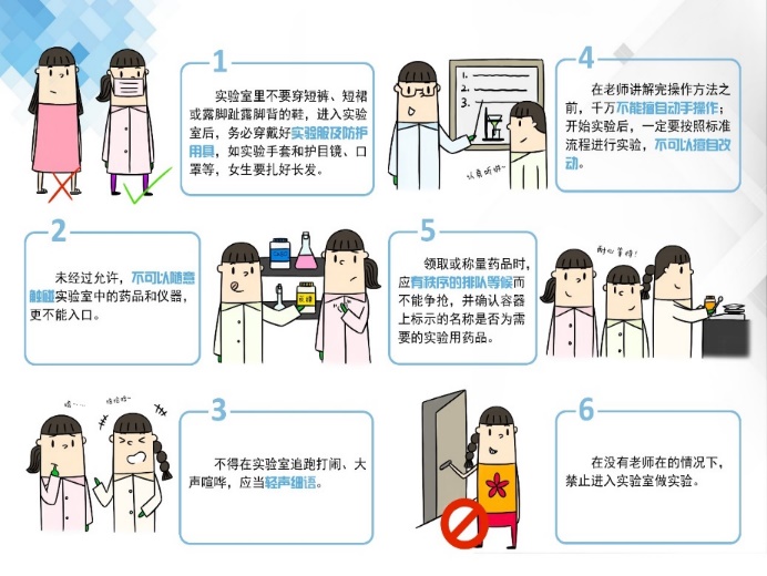 依据学校、学院实验室相关安全管理规定,针对实验室中存在的安全隐患问题、实验安全管理问题、实验安全操作问题等,用漫画形式阐述出实验室安全的重要性和必要性。