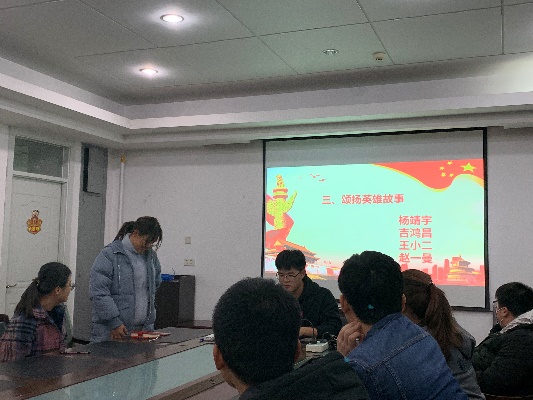 颂扬英雄故事,传承红色血脉和革命精神,让革命火炬传递、传承、传扬。通过朗诵英雄故事,呼唤红色精神回归,带动红色经典流行,歌颂抗日战争中为保家卫国争取独立的英雄战士。由宣传委员闫云芳带领分享抗战英雄故事,分享了抗日战争中最具有代表性最可爱的人:杨靖宇、吉鸿昌、王小二、赵一曼、赵尚志、狼牙山五壮士,他们以铮铮铁骨战强敌、以血肉之躯筑长城、以前仆后继赴国难,谱写了惊天地、泣鬼神的雄壮史诗。通过学习抗日故事,让我们明白了如今的美好生活是多么的来之不易,是一批批英雄烈士抛头颅洒热血换来的,是一批批为革命奔波劳碌的先贤们拼搏来的,让我们向抗日英雄致敬,我们没有忘记他们,也向我们正在走向繁荣富强的伟大祖国送去祝福,愿您永远美丽强大。