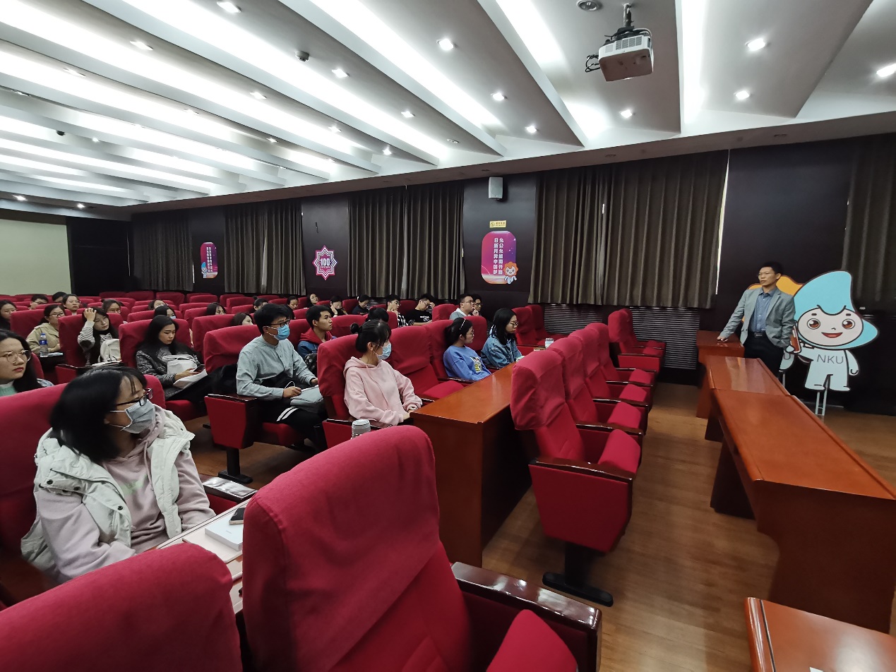 本场讲座的主题是“科研之路”,刘定斌老师从南开化学分析学科介绍、研究生定位以及如何做好科研这三个部分和同学们进行了深入的交流和探讨。刘老师首先向同学们介绍了南开化学分析学科中心的团队力量和平台影响力,展示了学科的主要研究方向以及科研成果,让同学们对本专业有了一个全面的认识。紧接着,刘定斌老师就研究生的自我定位和同学们展开了探讨。他和在场同学分享了他对于Betway必威“允公允能,日新月异”的校训的理解,鼓励大家努力成为公能兼备、爱国奋进的新南开人。刘定斌老师还向同学们提出了自己对于南开化学研究生的期待:志存高远,踏实奋进,作为化学工作者,刘老师提醒大家要开阔眼界,勇于创新,同时又要脚踏实地,坚持不懈。