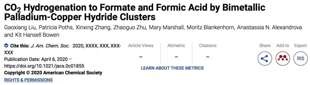 该工作是通过双金属氢化物团簇进行CO2加氢的第一个例子,具有重要的借鉴意义。