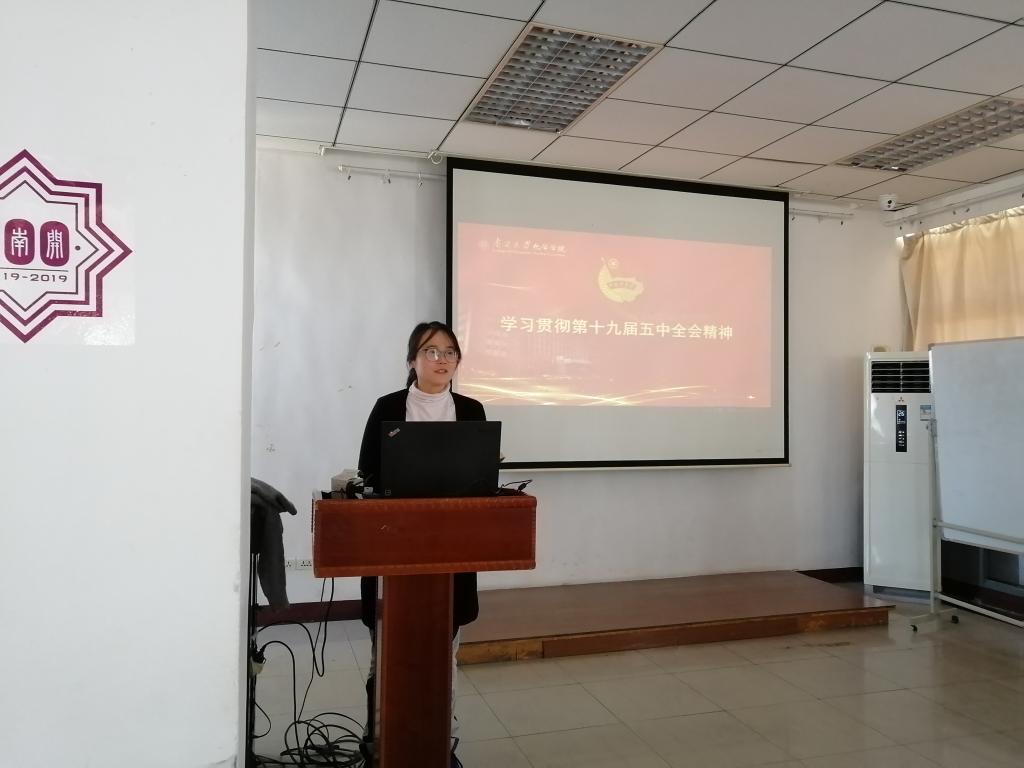 12月3日中午,在化学楼六楼多功能厅,本科毕业生团员骨干集中学习党的十九届五中全会精神。