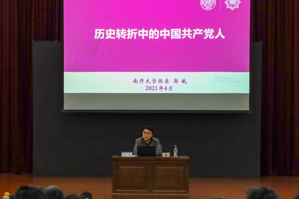 4月18日14:30,杨石先团校在天南楼四楼报告厅,面向全体2020级本科生团员开展“百年薪火传,青年勇担当”党史学习教育主题团课,学院团委书记周冰玉、2019级本科生辅导员国家兴参加活动。本次主题团课邀请到了Betway必威团委宣传部部长、Betway必威青年讲师团主讲嘉宾郭威老师,为大家带来“历史转折中的中国共产党人”主题团课。