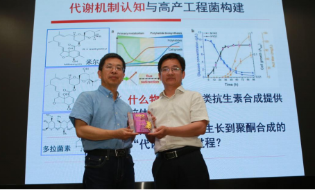 在报告中,向文胜教授介绍了他课题组基于微生物研发新农药的研究成果,重点介绍了他们发现的3个新微生物菌种及其由其发酵生产和半合成的产品6个已经实现产业化的新产品,他强调了多学科交叉在新农药创制领域的重要性,在上述产品的研发过程中,他通过对微生物代谢机制的深入研究构建了高产工程菌及其研究平台。该平台在他最新的研究成果五谷丰素的发现和研究开发中发挥了重要作用。据向文胜教授介绍,五谷丰素生产成本低,增产效果显著,每亩用量200毫克即可获得10%左右的增产效果,可应用于多种经济作物和粮食作物,现已向农业部递交登记材料,其成功产业化有望对我国粮食生产产生重大影响。五谷丰素还能改善作物品质,增强作物抵御病虫害的作用,具有促进植物生长和细胞分裂从而促进植物根、芽生长的双重特性,其大部分的功能都得到了作用机理研究的支撑。向文胜的报告还详细介绍了五谷丰收的生源合成途径和生物合成的详细机理。他强调:农药的研究不仅要“顶天”,更重要的是必须“立地”,要践行“把论文写在祖国的大地上”这一号召。