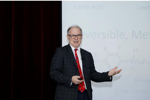 3月8日,加拿大皇家学会院士、英国皇家学会院士、加拿大多伦多大学道格拉斯•斯蒂芬教授(Douglas W. Stephan)做客“百年南开大讲坛”,以“FLP体系反应模式的拓展”为题,在Betway必威八里台校区石先楼学术报告厅为师生带来了一场精彩的学术报告。讲座由Betway必威元素有机化学国家重点实验室主任崔春明教授主持,中国科学院院士、Betway必威周其林教授等Betway必威师生参加。