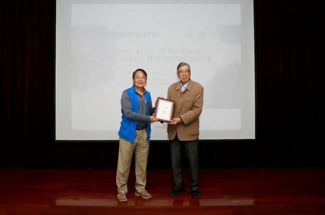 讲座中,招衡详细讲解了利用发酵的方法在土壤放线菌的次级代谢产物中发现多杀菌素的过程,同时介绍了96孔板高通量杀虫活性物质筛选方法的设计和开发以及对杀蚊幼虫生测方法的改进。之后,他还介绍了多杀菌素的作用机理和作为农药产品及其在畜禽和宠物寄生虫以及人体虱等有害生物防治领域的市场价值和贡献。招衡指出,自己秉承“只杀虫不杀菌”的筛选理念,幸运而成功地开展了绿色生物农药的研究开发。