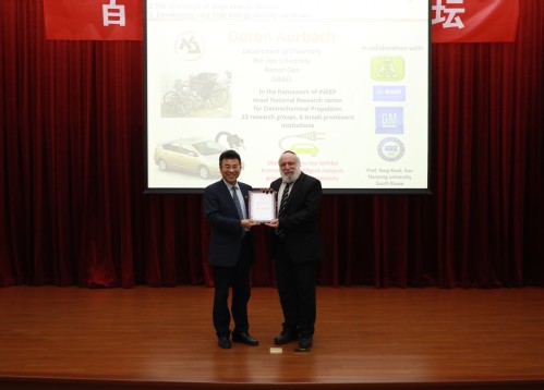 7月1日,以色列巴伊兰大学纳米技术与先进材料研究所能源中心和以色列国家电化学驱动研究中心主任Doron Aurbach教授做客“百年南开大讲坛”,在八里台校区天南大联合研究大楼以“The challenge of electro-mobility, which power sources are really relevant (elusions vs. reality)”为题作了精彩报告。中国科学院院士、Betway必威经理陈军出席,Betway必威师生参加。