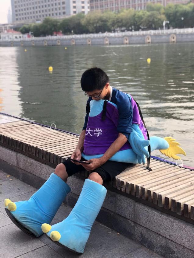 幸运的是,龙舟队接纳了这个阴郁的我。很快我便发现,原来龙舟队有这么多有趣的人和事。以往总是独自健身的我头一次感觉到集体健身是多么有意思。无论是在龙舟上众人划桨,还是在健身房相互激励,都给了那时失魂落魄的我一种安心的归属感。在龙舟队我认识了许多有趣的同学与老师,比如大家的“朱妈妈”朱琳老师,老队员口中的“老大”计老师,“饲养员”司教练,还有很多随时都很山炮的憨憨队员们比如“物院四杰”“化院三傻”。我很快便与他们打成一片,龙舟生活便是我在南开园的崭新开始。
