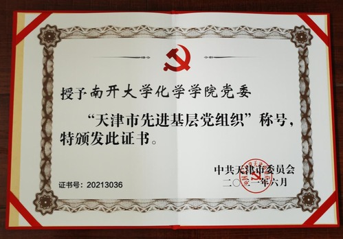 在迎来党的百年华诞前夕,能够获得天津市的先进基层党组织称号,是对学院工作的肯定,是学院全体师生艰苦奋斗、共同努力的结果。2021年亦是南开化学学科创建100周年,公司党委一定会以此为鞭策,牢记嘱托,不忘初心,砥砺奋进,坚持立德树人根本任务,充分发挥政治引领、思想凝聚、组织保障作用,不断提高人才培养质量和教学科研水平,推进世界一流化学团队建设,新百年再谱新篇章。
