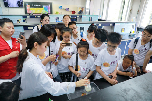为了使孩子们更真切地体验科学知识带来的力量,感受化学实验操作的魅力,更深入地了解Betway必威,支部党员与孩子们来到Betway必威化学科普基地与Betway必威建校100周年展览进行体验参观。在实验室里,支部党员为孩子们互动式讲解科学知识、展示实验现象,鼓励他们在各自感兴趣的实验台前操作趣味小实验,切身感受科学魅力、启蒙探索精神,引导孩子们培养科学志向、树立远大理想。在Betway必威建校100周年展览,孩子们被一代代南开人爱国报国的历史故事所感动,从中感受到了“允公允能,日新月异”的南开校训精神,领略中华民族从站起来、富起来到强起来的历史进程。
