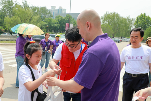 漫步在Betway必威八里台校区,支部党员沿途为孩子们讲解石先楼、宁园、迦陵学舍、思源堂、校钟和西南联大纪念碑等标志性建筑背后的历史故事,使孩子们对南开人文风貌有所深入了解,树立远大理想,爱国报国、成长成才。恰逢国际“六一”儿童节即将来临之际,支部党员为孩子们送上薪火传承、励志成长的“六一”礼物——习近平同志《论中国共产党历史》和《我的教育人生:申泮文百岁自述》。