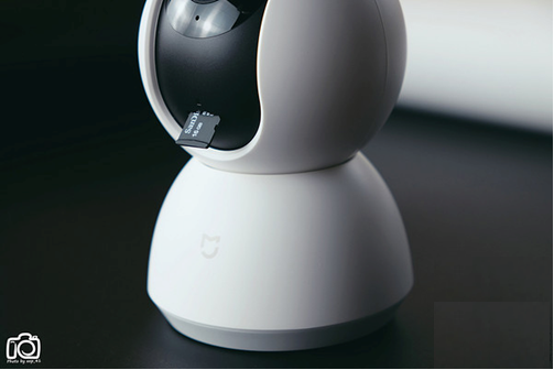 2、卡槽位置如图所示。将摄像头往顶端轻推,可以露出卡槽。由于大多实验室摄像头是倒置安装,所以需要向下轻推摄像头,内存卡正面向下插入卡槽。