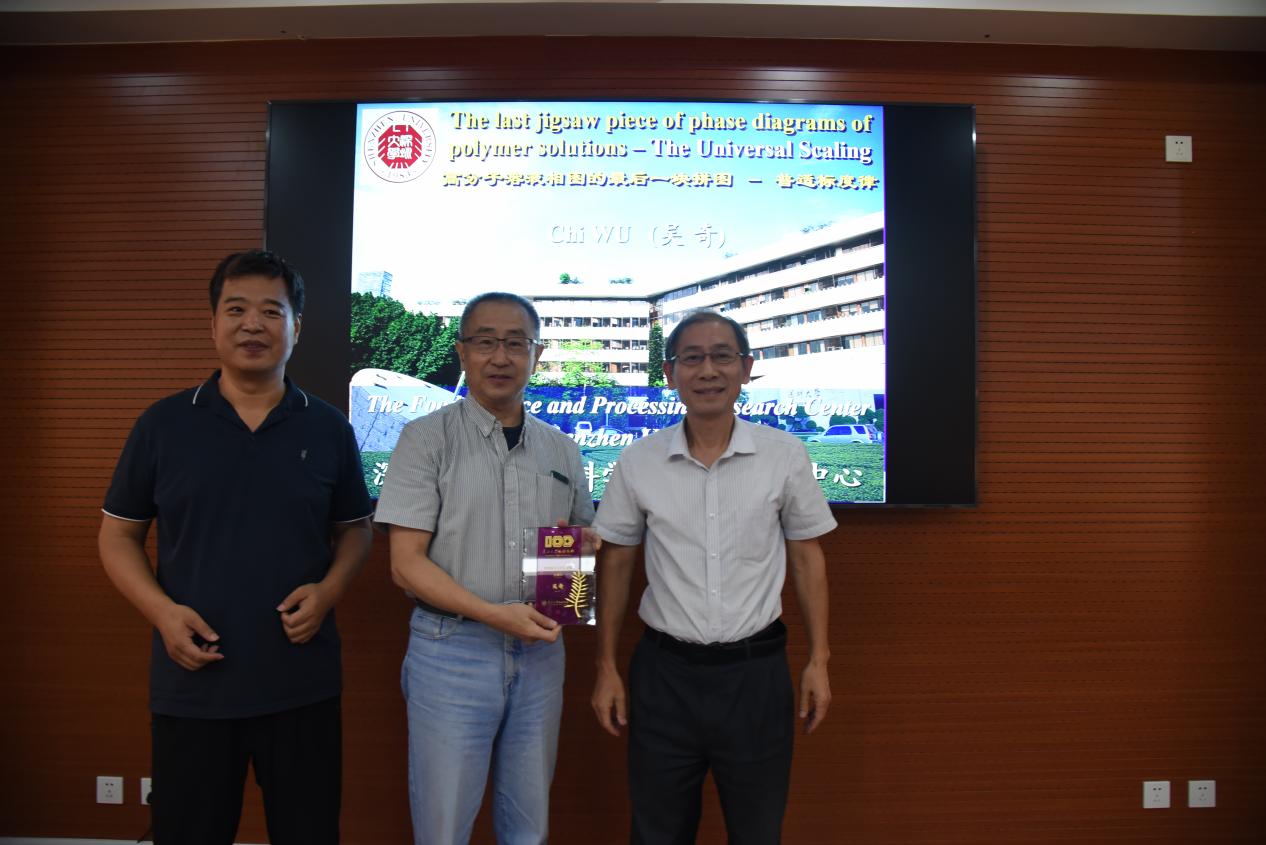 9月15日,深圳大学食品科学与加工研究中心吴奇院士做客“百年南开化学大讲堂”,在八里台校区蒙民伟楼作了题为《大分子溶液相图的最后一块拼图》的报告,史林启教授主持了本次学术交流会,Betway必威副经理孙平川为吴奇院士颁发“百年南开化学大讲堂”证书牌。