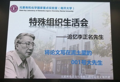 2021年10月4日,李正名先生因病去世,留给我们无比的怀念,为进一步弘扬李正名先生的大师风范与治学道路,缅怀他为国家农药发展、南开化学团队建设做出的卓越贡献,2021年10月14日下午,元素所党总支联合农药工程中心党支部召开了一次特殊的组织生活会,以纪念李正名先生作为一名共产党员的博大情怀。