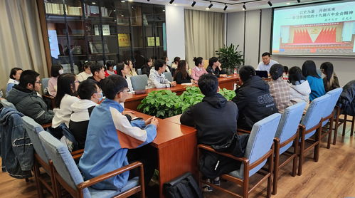 会议伊始,2021级本科化学五班团支部的邢博向同学们简要介绍了党的十九届六中全会的相关背景知识。