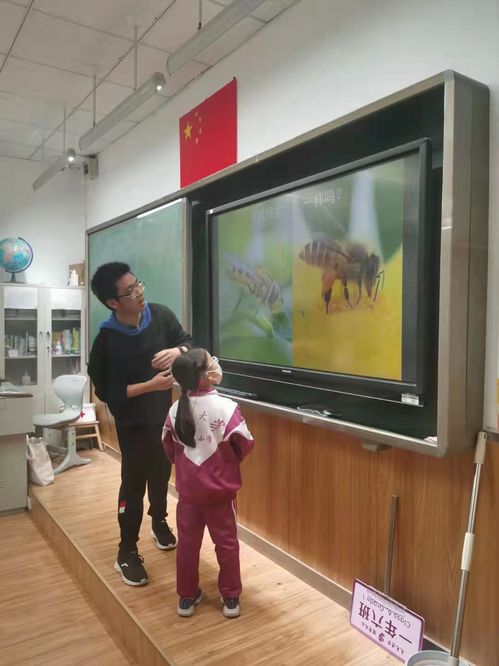随后,讲师们带领孩子们进行实践检验,锻炼他们主动观察和分析的能力,协助他们分析出食蚜蝇与蜜蜂的细微差别。孩子们积极互动,不断尝试发现图片中的“蛛丝马迹”,课堂气氛在孩子们欢乐的笑声中达到高潮。
