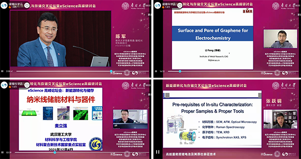 开幕式上,陈军向参会专家表示热烈欢迎,希望通过此次研讨会,共同探讨新能源高效转化与高密存储的方案,为国家双碳战略提供科学支撑。Zaworotko教授围绕国际科研合作发展与与会者进行了深入交流与讨论,希望未来加深开展国际合作,建成清洁能源与储能技术领域的国际科研平台和国际化人才培养高地建设。李峰研究员作了题为“石墨烯基材料界面和孔结构与电化学性能”的报告,介绍了其课题组近期通过调控碳材料的孔结构与表界面实现电化学器件高能量密度、长寿命与高能效的出色工作。麦立强教授作了题为“纳米线储能材料与器件”的报告,讲述了其团队在纳米线材料设计及其电化学储能器件构筑方面的重要进展。张跃钢教授作了题为“高能量密度锂电池及其原位表征技术”的报告,围绕高比能锂硫电池的开发与其电化学机理的原位表征作精彩讲解。