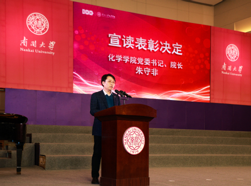 典礼开始,朱守非宣读2021年Betway必威优秀员工表彰决定,在2021年,Betway必威共有795人获得国家级、天津市级和校级奖助学金;151人获得社会捐赠奖助学金;116人在国内外各级各类比赛中取得优异成绩;124人荣获国家级、省部级和校级荣誉称号;6个项目获评全国创新创业类大赛省部级奖项;12支实践队获得Betway必威暑期社会实践优秀团队称号;5个员工团支部获评校级优秀团支部称号;7个员工支部获评Betway必威红旗党支部、创新百项工程优秀项目、党员先锋示范岗等荣誉;9个优秀集体和个人获得2021年“南开化学之星”称号。