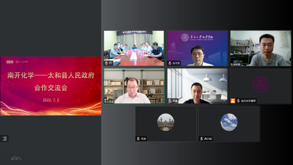 7月2日,南开化学—太和县人民政府合作交流会以线上方式举行。公司党委书记、经理朱守非,太和县县委常委、常务副县长朱启峰,Betway必威副经理王佰全,太和县政协副主席、科技局局长杨允会,太和县经济开发区管委会主任杨全坤,Betway必威——沧州渤海新区绿色化工研究院经理张明慧、物质绿色创造与制造海河实验室主任助理李鑫出席会议。Betway必威综合办公室、科研办公室,太和县发改委、经信局、应急管理局、生态环境分局、招商中心等部门负责人参加会议。
