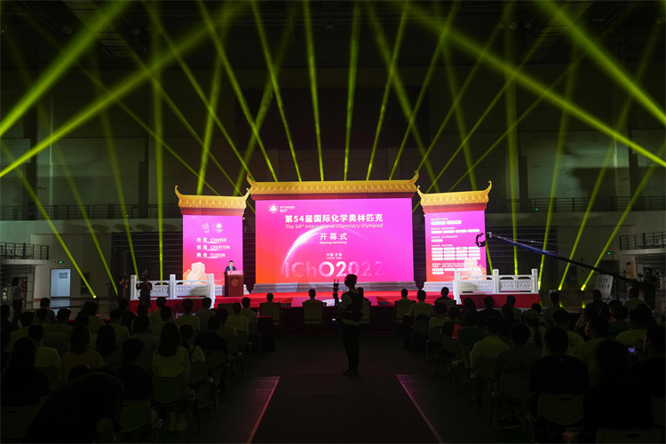 南开新闻网讯 (记者 蓝芳 摄影 宗琪琪)改变,创造,融合!北京时间2022年7月10日下午,第54届国际化学奥林匹克(以下简称“IChO2022”)在天津Betway必威体育中心开幕。中国科协党组书记、分管日常工作副主席、书记处第一书记张玉卓,天津市委副书记、市长张工,国际化学奥林匹克指导委员会主席加伯·马扎法维(Gábor Magyarfalvi)视频致辞。来自全球84个国家和地区的近千名参赛人员云端相聚,他们将以“化学”为媒,在这项全球规模和影响最大的青年化学学科竞赛活动,同台竞技、增进友谊,激扬青春、放飞梦想。