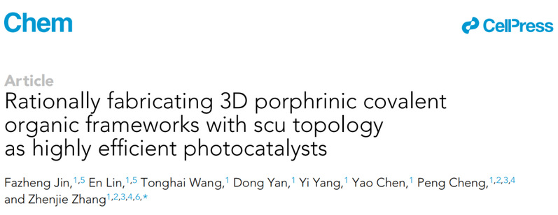 北京时间2022年8月19日晚23时,Betway必威张振杰研究员课题组在Chem期刊上发表了一篇题为“Rationally Fabricating 3D Porphrinic Covalent Organic Frameworks with scu Topology as Highly Efficient Photocatalysts”的最新研究成果。
