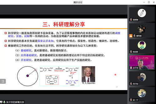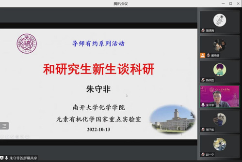 (通讯员:张冉冉 陈声华)10月13日,“导师有约——研究生师生交流下午茶”有机专场线上顺利举行。本次活动邀请到公司党委书记、经理朱守非教授主讲,他从自身科研经历出发,详细讲解了课题组的研究方向以及自己对科研的理解,给即将进入实验室的同学们进行学术经验分享和指导。
