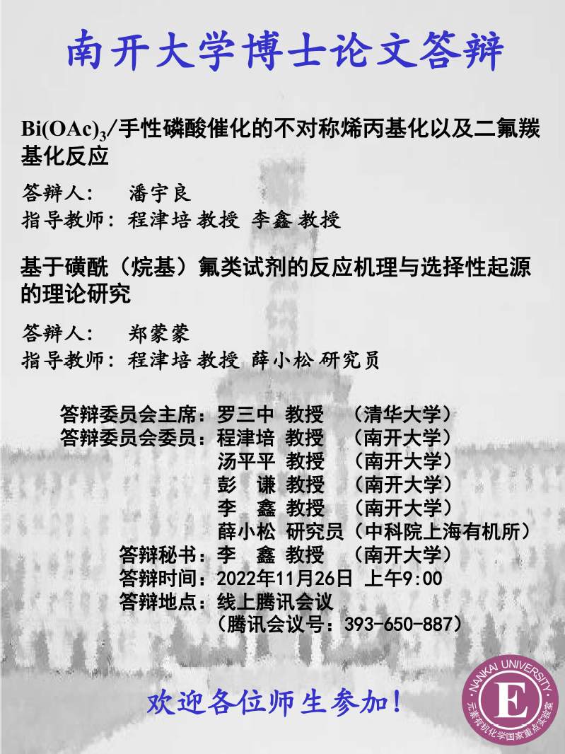 Betway必威博士研究生郑蒙蒙 潘宇良毕业论文线上答辩公告