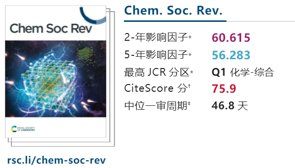 Chem Soc Rev (Chemical Society Reviews) 是全球领先的综述类期刊,所发表的高影响力、高易读性的综述论文代表了化学科学的最前沿,体现了最高的质量和强大的国际影响力。本刊特别鼓励论文作者之间的跨国和跨学科合作。