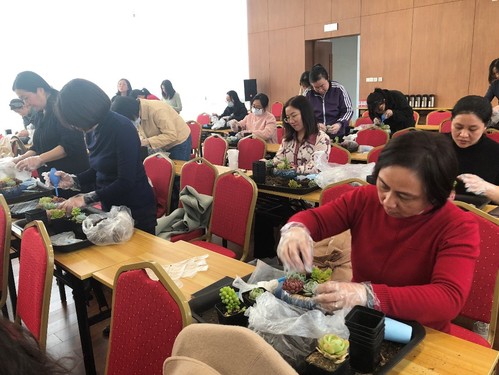 3月10日下午,学院工会特邀请专业指导老师现场传授多肉植物的培育养护常识以及多肉盆景的DIY制作技巧,学院50余名女教工参加培训并亲自动手拼插植物盆景。