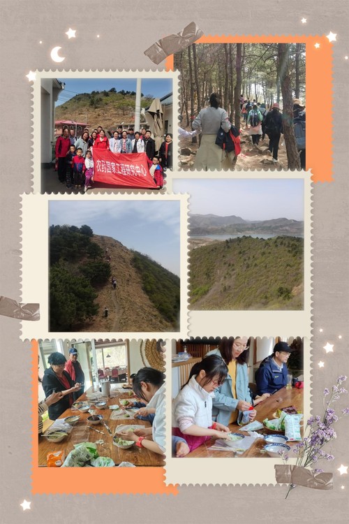 老师们三五结群徒步攀爬,在这难得的休闲时光里一起闲暇漫游,相互鼓励和扶持着,征服一段又一段的山坡小路,探寻着不一样的山景春光。本次我们还增添了青团小制作的趣味活动项目,大人孩子们乐享其中,丰富了我们的整个郊外活动。