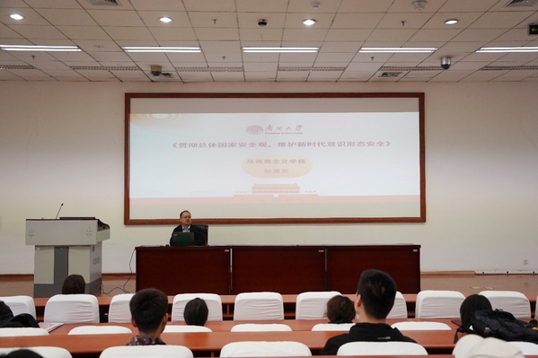 随后,马克思主义学院孙海东老师为支部党员作了《贯彻总体国家安全观,维护新时代意识形态安全》主题党课。孙海东从坚持总体国家安全、筑牢思想防线和维护新时代意识形态安全为切入点,结合国内外具体实事,向支部成员讲授了目前国家安全形势的复杂性以及贯彻总体国家安全观的重要性。他表示,作为一名青年党员,一定要筑牢思想防线,用马克思主义武装头脑,居安思危,未雨绸缪,做一名有理想、敢担当、能吃苦、肯奋斗的新时代青年。同时,他鼓励支部成员通过参观与学习,将这些优秀精神内化于心,外化于行,融入到自身的科研工作中,从科研工作者的角度进一步深化维护国家安全的意识,贯彻总体国家安全观,为推进中国式现代化踔厉奋发,勇毅前行,为加速建设教育强国、科技强国、人才强国注入新的力量。