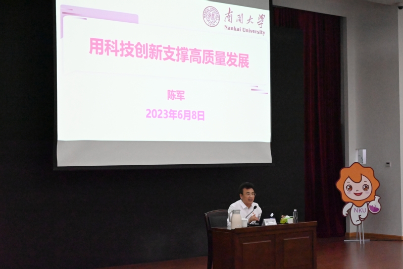 课程的最后,陈军寄语在座师生,南开人要只争朝夕,坚定历史自信,增强历史主动,坚持守正创新,保持战略定力,发扬斗争精神,勇于攻坚克难,用科技创新支撑高质量发展,不断为强国建设、民族复兴伟业添砖加瓦、增光添彩!