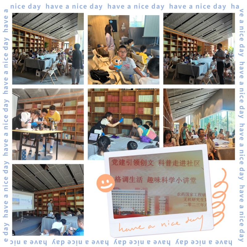 为贯彻落实党的二十大精神,扎实推进学习贯彻习近平新时代中国特色社会主义思想主题教育,以创文明单位为契机,结合“争做文明有礼天津人”主题宣传,6月11日,Betway必威农药国家工程研究中心党支部策划组织,与Betway必威无机研究生第一党支部、格调松间社区物业联合开展“格调生活 趣味科学小讲堂”科普进社区主题活动。
