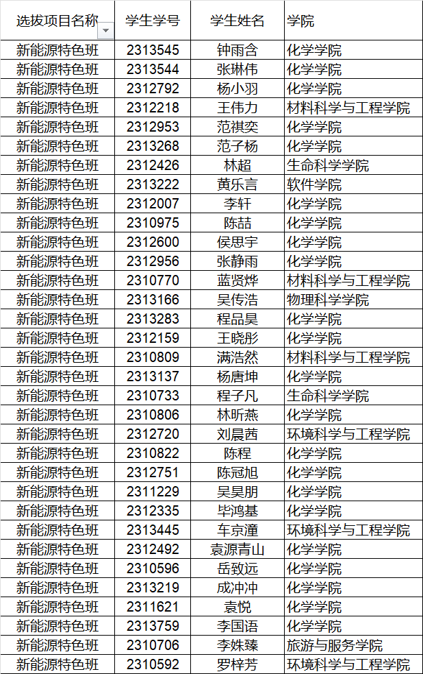 附:新能源特色班面试名单