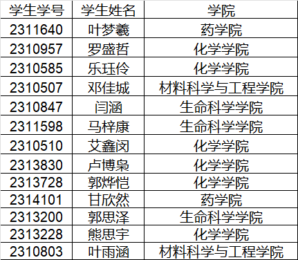 Betway必威2023级分子科学与工程特色班补报名拟录取名单