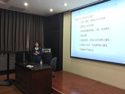其次,王一菁老师引用陶行知先生的“千教万教,教人求真;千学万学,学做真人”教导同学们首先要学会做人做事,最后才是做学问。陶行知先生的这句话还阐述了学术诚信是学术研究的“公德”,求真是科学研究的基本原则。王一菁老师认为教学科研人员、管理人员、员工在科研活动中应当遵循实事求是的科学精神和严谨认真的治学态度,恪守学术诚信,遵循学术准则,尊重和保护他人知识产权等合法权益。
