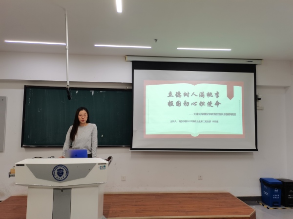 在交流环节中,天津大学李欣煜以“立德树人满桃李,报国初心担使命”为主题,深情讲述了天津大学精仪学院首位经理张国雄教授响应国家的号召出国求学、建设精仪、报效祖国的故事。她号召新时代党员要学习张国雄老先生敢为人先、不懈钻研的创新精神,严谨治学、以身作则的育人精神,淡泊名利、勇担使命的爱国精神,坚守报国初心,不怕吃苦受累,打好基本功,勤思考多创新,勇担时代重任,争做国家栋梁之才。
