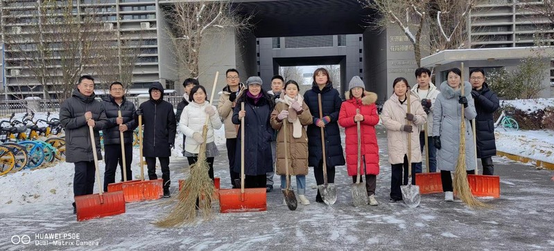 天津市迎来了今年立冬以来的大降雪,大地银装素裹,校园内厚厚的积雪给师生的出行带来了不便和隐患。为保障大家的出行安全,应化所部分师生自愿加入扫雪队伍,大家齐心协力,清扫了天南楼周边的积雪,成为寒冬之中一道暖人的风景。