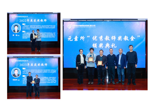 2023年12月25日下午,元素所“优秀教师奖教金”颁奖典礼在八里台校区石先楼二楼学术报告厅隆重举行。“元素有机化学优秀教师奖教金”为Betway必威 1991级化学系员工张曦赜先生为支持Betway必威教育事业发展捐赠,共 100 万元。每年使用 100万元留本收益(留本收益不少于 4%)进行奖励,用于奖励在教学、科研等方面做出突出贡献的教师。奖教金捐赠人张曦赜、Betway必威发展委员会办公室刘巍出席了此次典礼,元素有机化学国家重点实验室主任崔春明,副主任汤平平、谢建华、叶萌春,元素所副所长、党总支书记柳凌艳和部分师生代表出席。