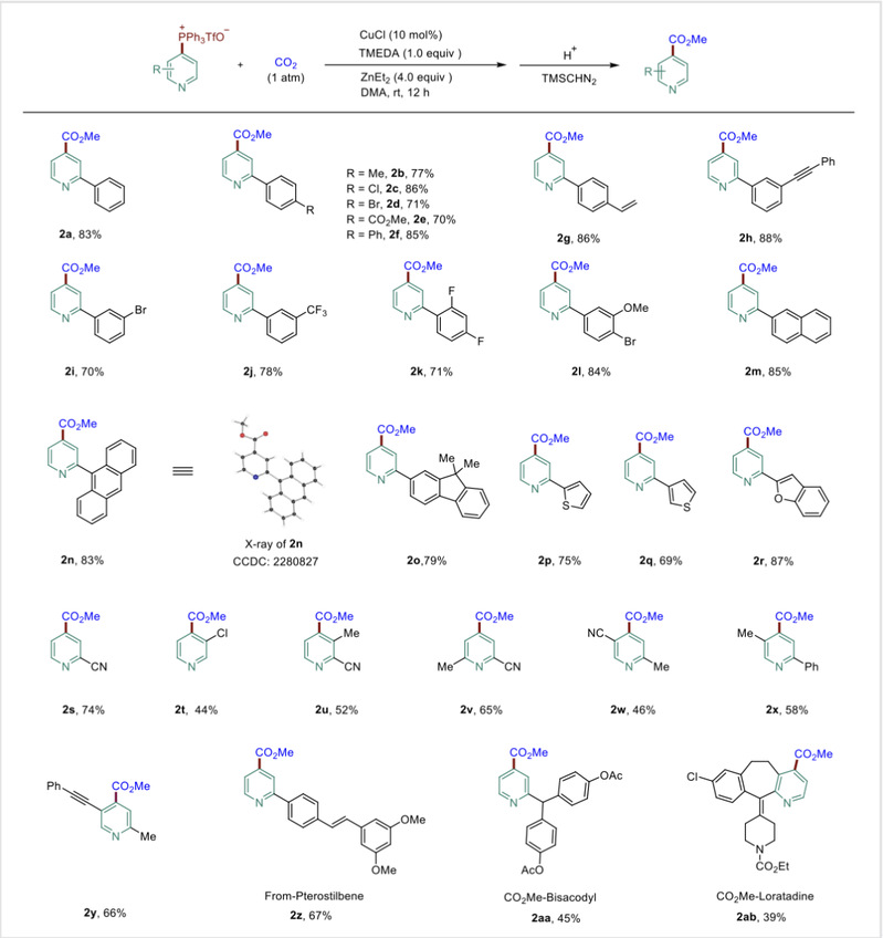 Copper-Catalyzed C4-selective Carboxylation of Pyridines with CO2 via Pyridylphosphonium Salts.