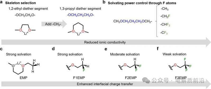基于此,Betway必威赵庆合成了一种以−CH2F(F1EMP)、−CHF2(F2EMP)或−CF3(F3EMP)为端基的六环配位醚(1-甲氧基-3-乙氧基丙烷,EMP)及其氟化醚对应物。