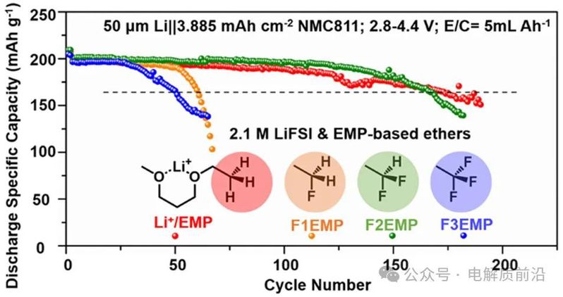 这项工作加深了对不同氟化程度下离子传输和界面动力学的基本理解,并为设计用于实际高压LMB的氟化醚电解质提供了一种可行的方法。
