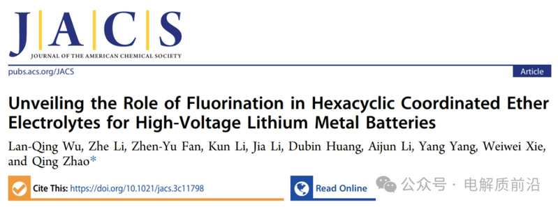 氟化醚已成为锂金属电池(LMB)的有前途的电解质溶剂候选者,因为它们具有高的氧化稳定性和锂金属剥离/电镀的高库仑效率。到目前为止,大多数报道的氟化醚电解质都是基于−CF3的,离子溶剂化对氟化程度的影响尚未得到很好的阐明。