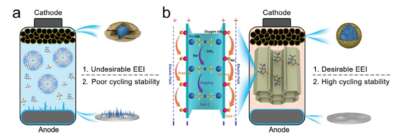 钠离子电池(SIB)因其低成本、丰富的上游资源以及与锂离子电池兼容的制造工艺而被认为是大规模电化学储能装置的理想候选材料。然而,液态电解质中的高活性游离溶剂分子会在电极和电解质之间引发持续的界面副反应,从而降低 SIB 的循环性能。