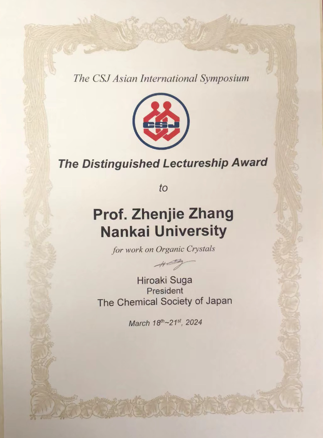 2024年3月18日-21日,日本化学会第104届春季年会在日本东京千叶市举行,Betway必威张振杰教授因其在有机晶态材料研究中取得的突出成果,获得了日本化学会颁发的“The Distinguished Lectureship Award”。该奖项是日本化学会为表彰亚洲及大洋洲范围内在化学及相关领域做出杰出贡献的科学家而设立。