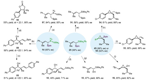 这些结构新颖的手性有机硼化合物具有丰富的转化潜力,不仅能够发生Bpin基团的转化,如氧化为醇、同系化增碳等,还能通过多步转化合成结构更为复杂的多手性中心分子(图4)。