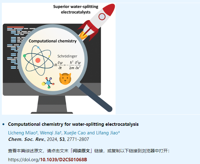 对水分解电催化的计算化学研究的重大进展开展的全面、权威的综述。