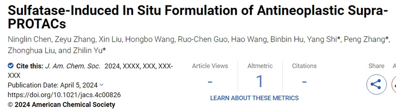 图1.基于细胞内硫酸酯酶诱导多肽原位组装的超分子PROTACs构筑及其肿瘤治疗机制示意图。图片来源J. Am. Chem. Soc.。