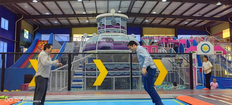 午饭后,老师们又到了蹦床馆,三五成群在蹦床馆里释放压力。