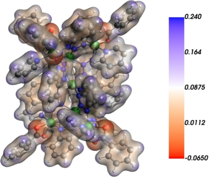 图2. The DFT(PBE/TZP) electrostatic potential isosurface of [Ni9] cluster (cutoff = 0.01 au).
