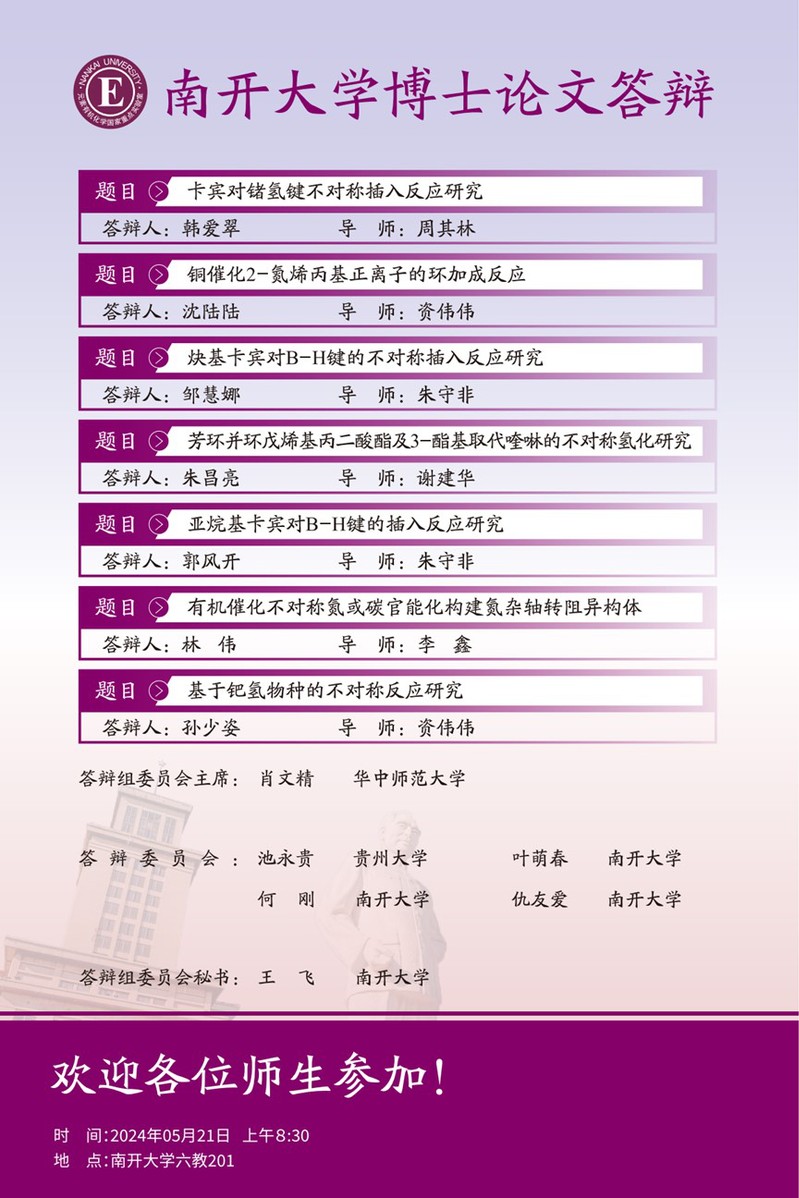 Betway必威博士研究生毕业论文答辩公告 韩爱翠 沈陆陆 邹慧娜 朱昌亮 郭风开 林伟 孙少姿